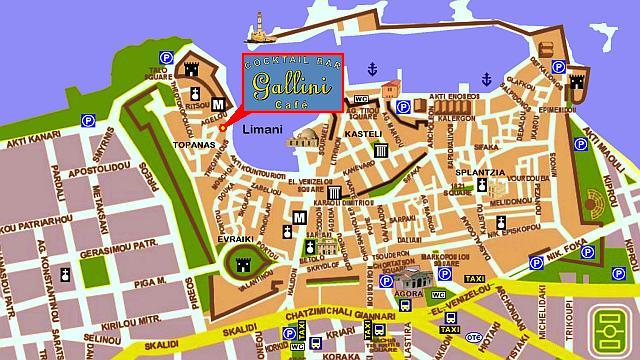 Cocktail Bar GALLINI Restaurant Music Café Akti Kountourioti 43 - GR-73100 Chania (Venezianischer Hafen) Tel.: +30 28210 91643 - Mobil-Tel.: +30 6972704127 - e-Mail: gallini12@hotmail.com |
